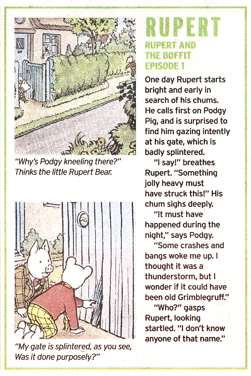 Beginning in today's Sunday Express is the delightful but often retold story Rupert and the Boffit, written by Freddie Chaplain and illustrated by Alex Cubie.